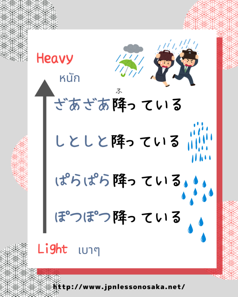 There are many ways to describe rain in Japanese, and onomatopoeia is often used too.